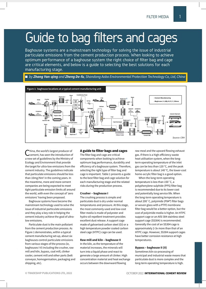 #shandongaobo #article #ICR #International Cement Review #magazine #guide to bag filter and cages